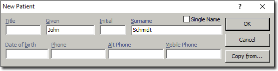 If the patient has never attended the practice before, click New The New Patient window appears.